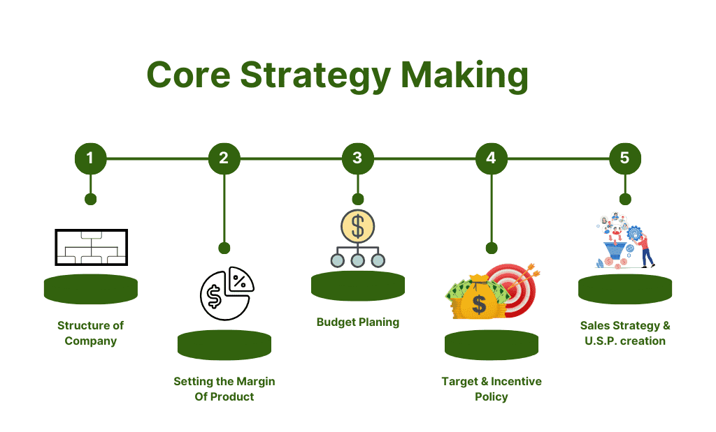 Core Strategy Making – “In core strategy making, I assist you at every level of launching and operating a successful company. I help define the type of company you should establish, focus on initial target doctors, recommend product launches, structure your organization effectively, determine team size, and set budgets. I also guide setting product profit margins, schemes, discounts, salaries, and incentives, and implementing robust reporting systems to ensure smooth business operations. Additionally, I specialize in creating scientifically-backed visual content, detailed product narratives, and innovative packaging to strengthen your brand’s market position.